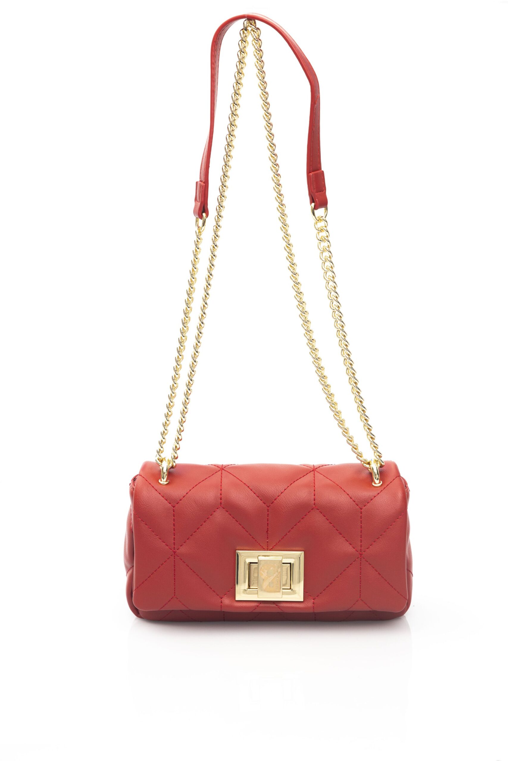 Leather Shoulder Bag. Flap With Hook Closure. Internal Compartments. Golden Details. Front Logo. 25*17*8cm.