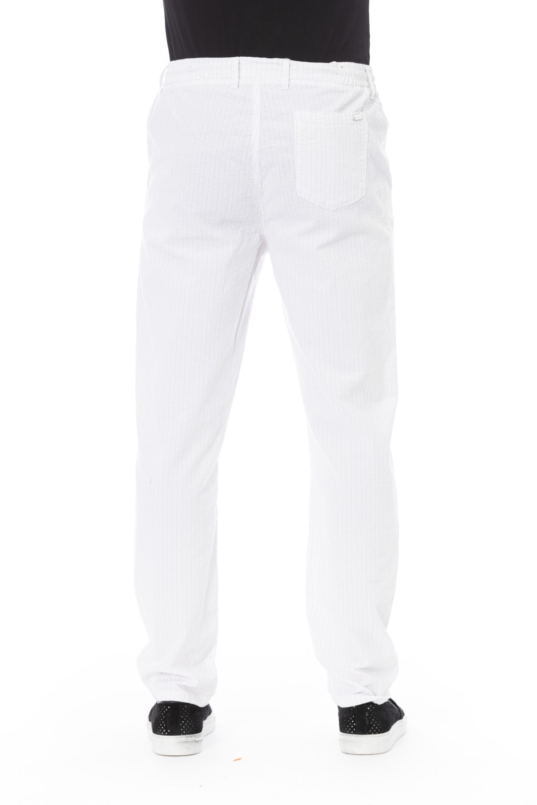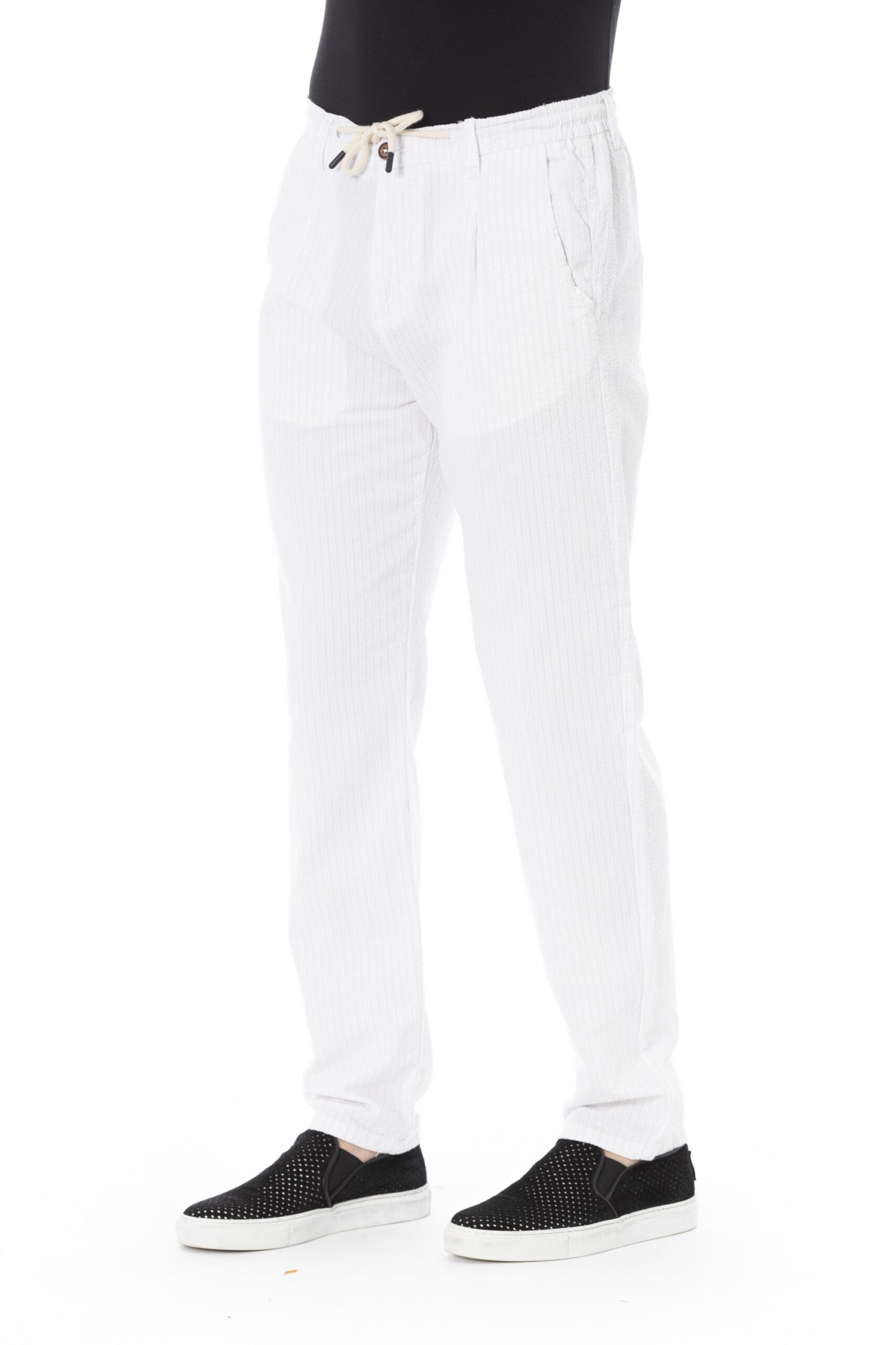 Chino Trousers. Drawstring Closure. Side Pockets. Back Welt Pockets.