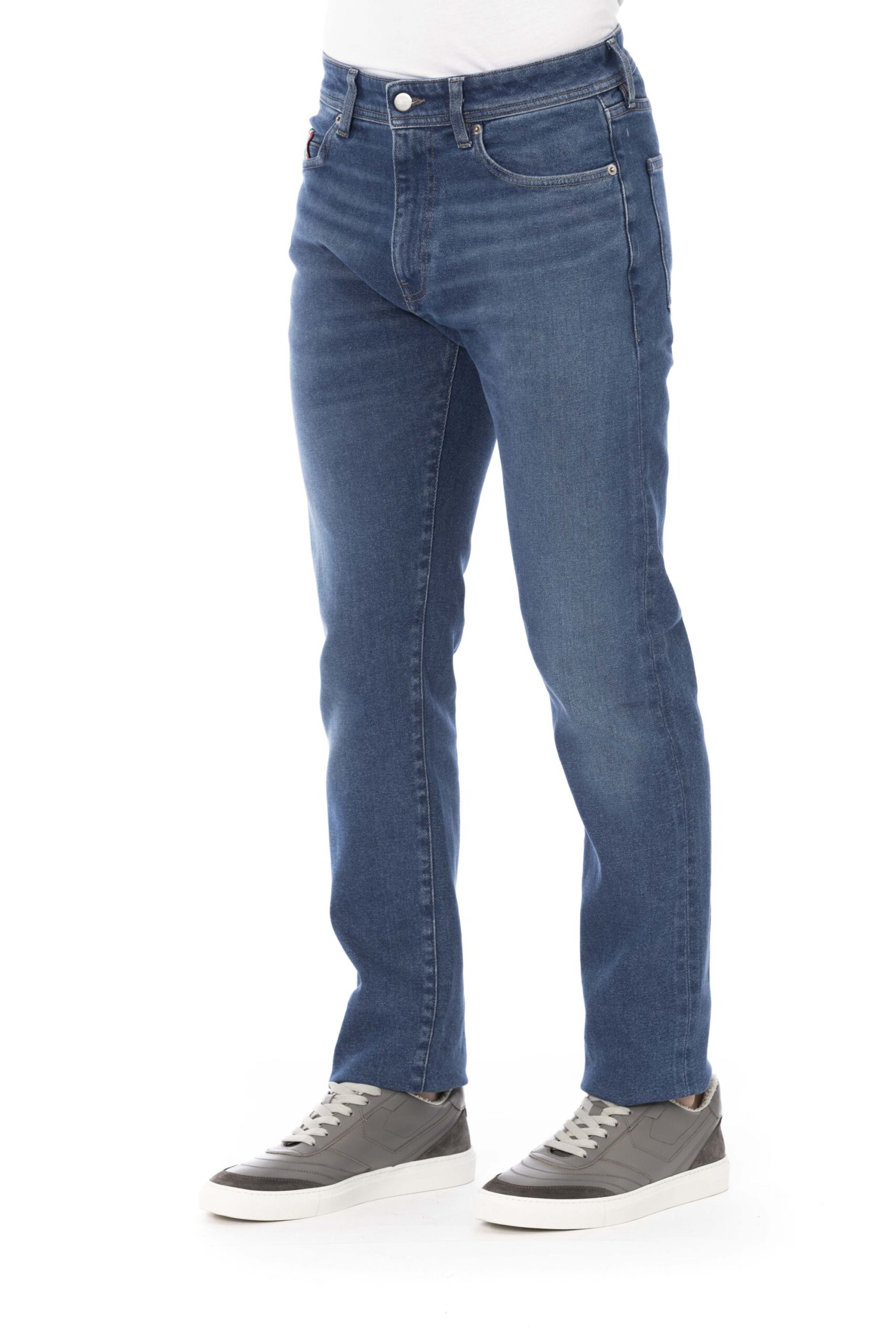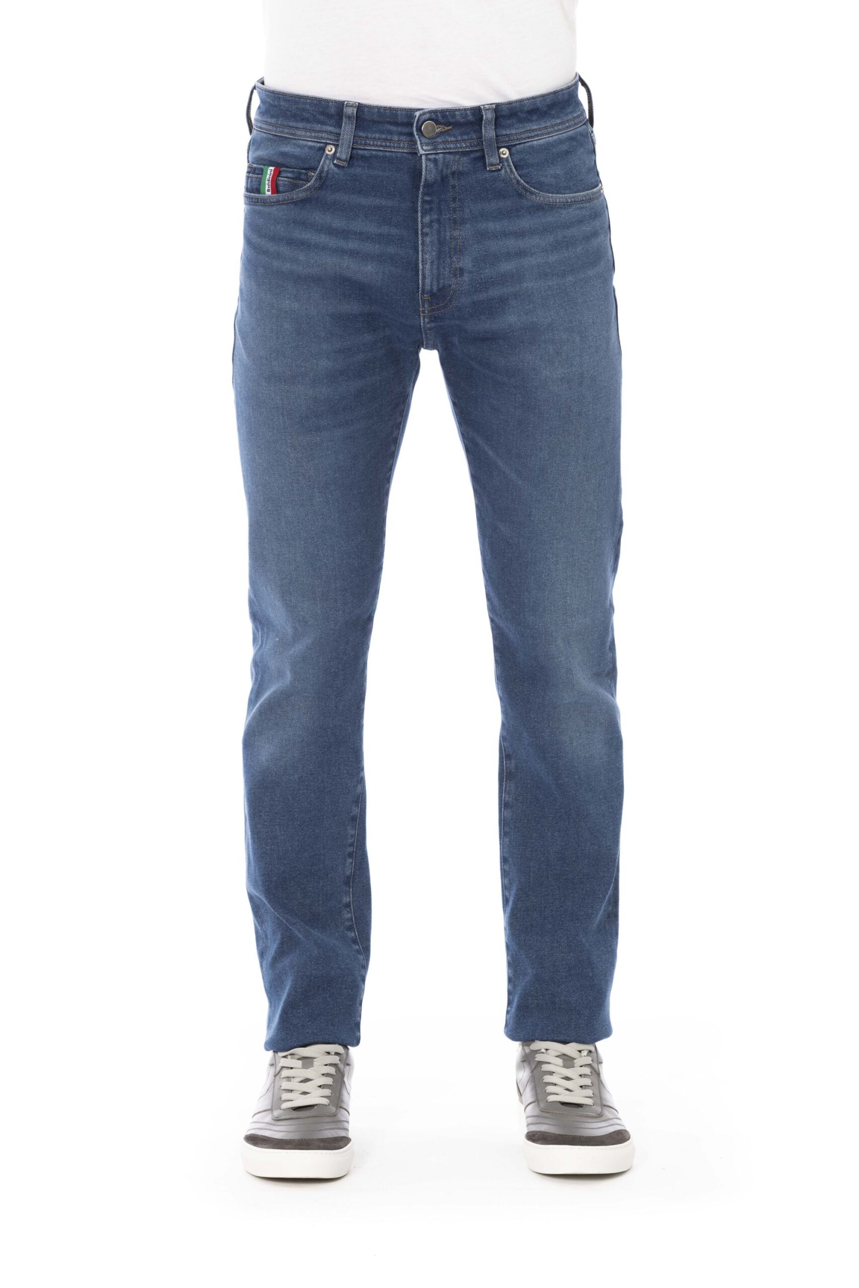 Regular Man Jeans With Logo Button. Front Pockets With Tricolor Insert. Rear Pockets. Label With Logo.