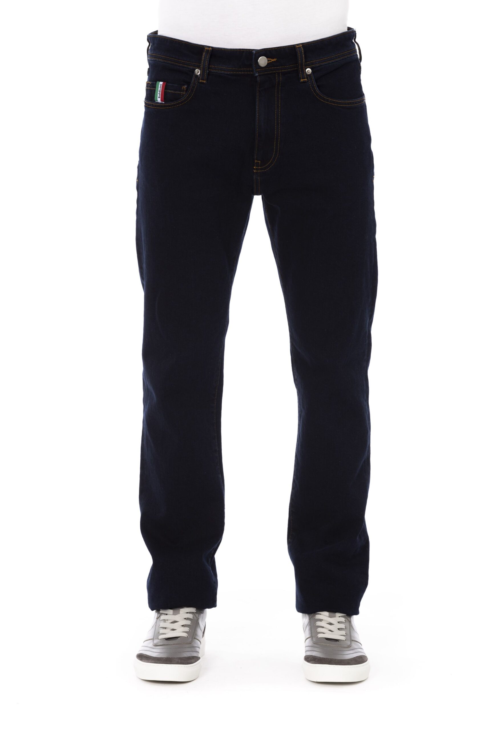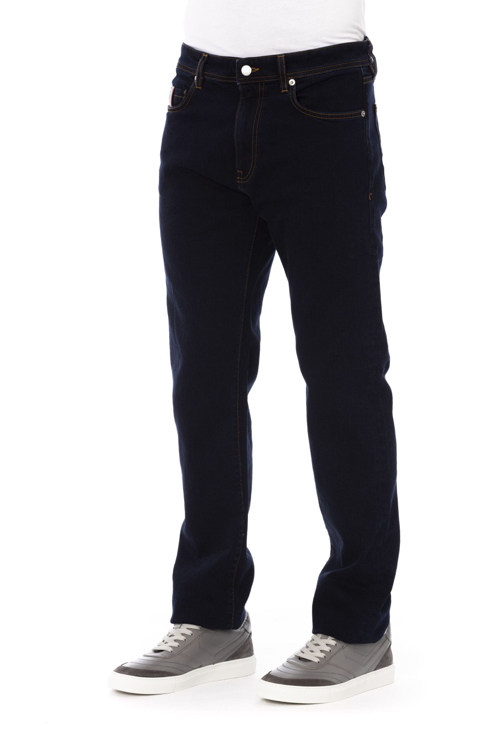 Regular Man Jeans With Logo Button. Front Pockets With Tricolor Insert. Rear Pockets. Label With Logo. Contrast Stitching.