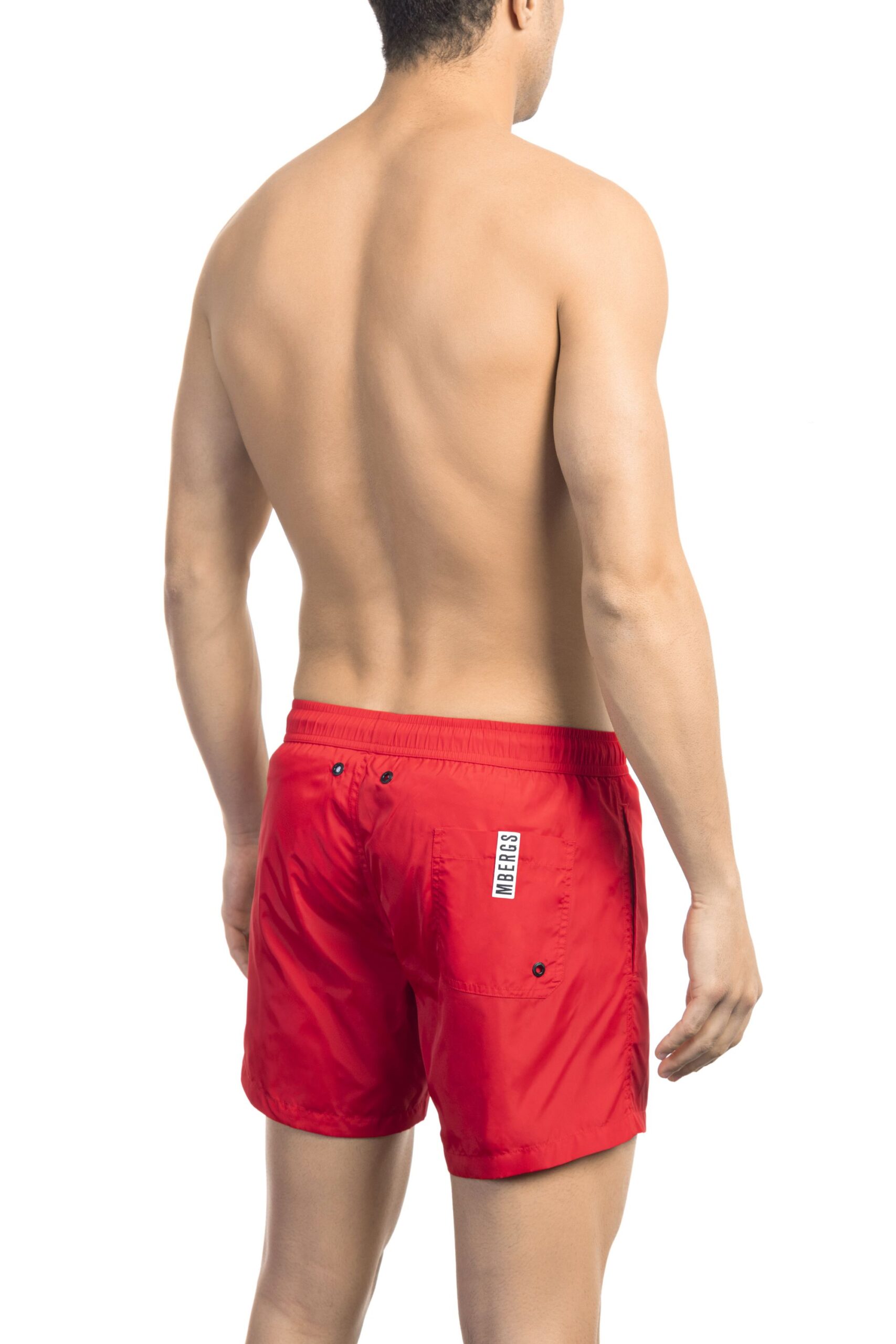 Swim Shorts With Tape. Two Side Pockets And One On The Back. Elastic Waistband With Drawstring.