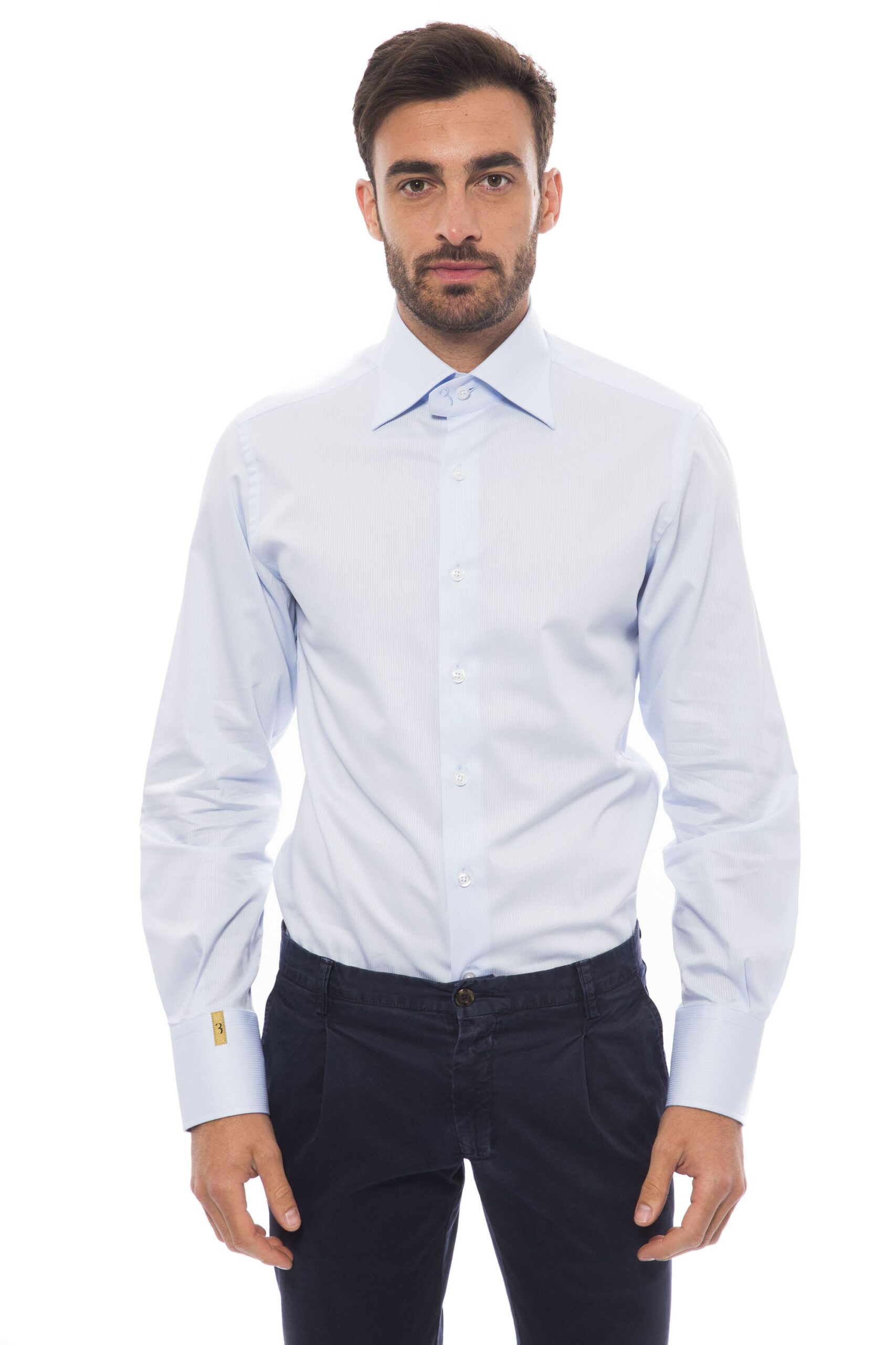 Medium Fit Shirt With Embroidered Monogram “b”. Small Leaf Collar. Personalized Buttons.