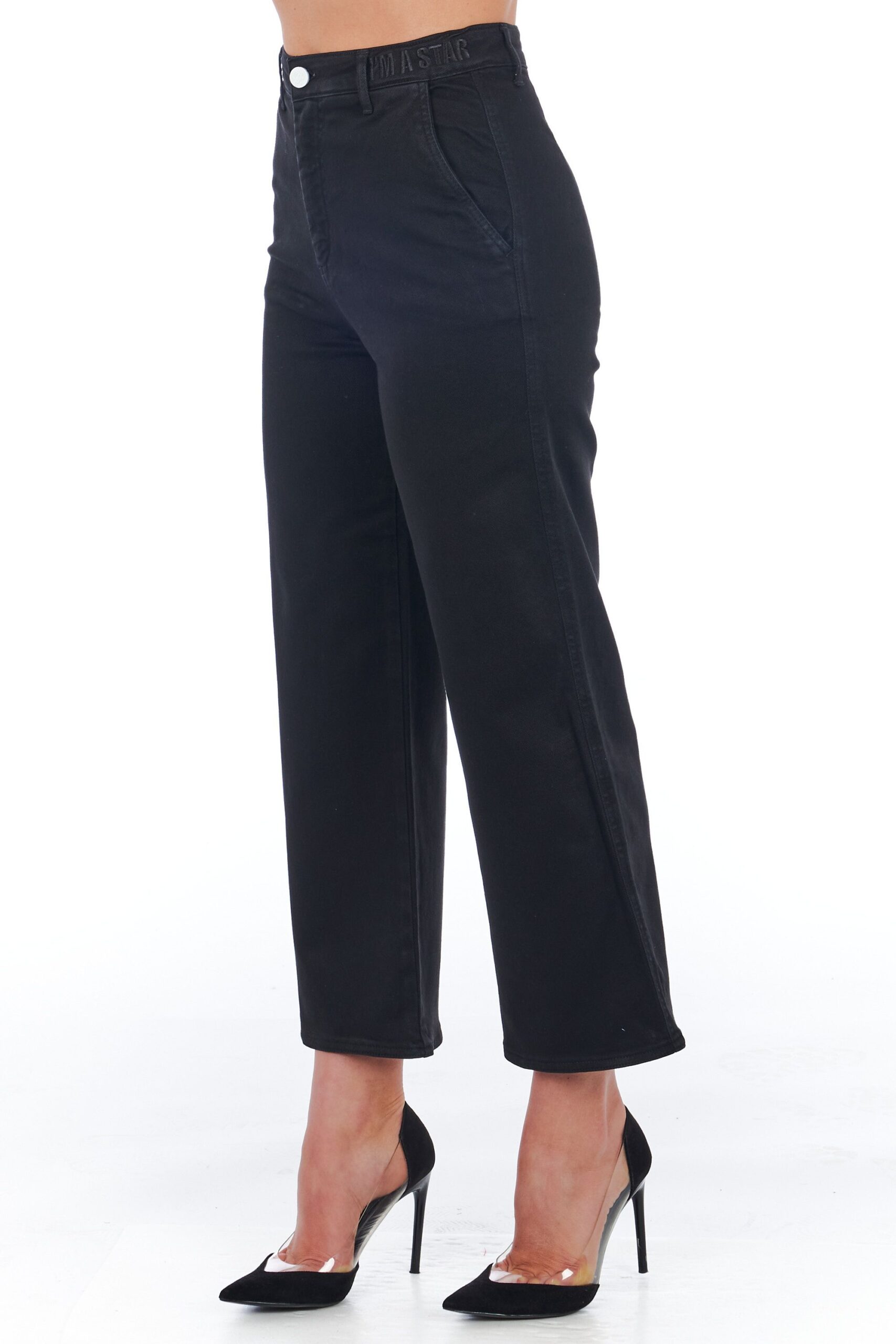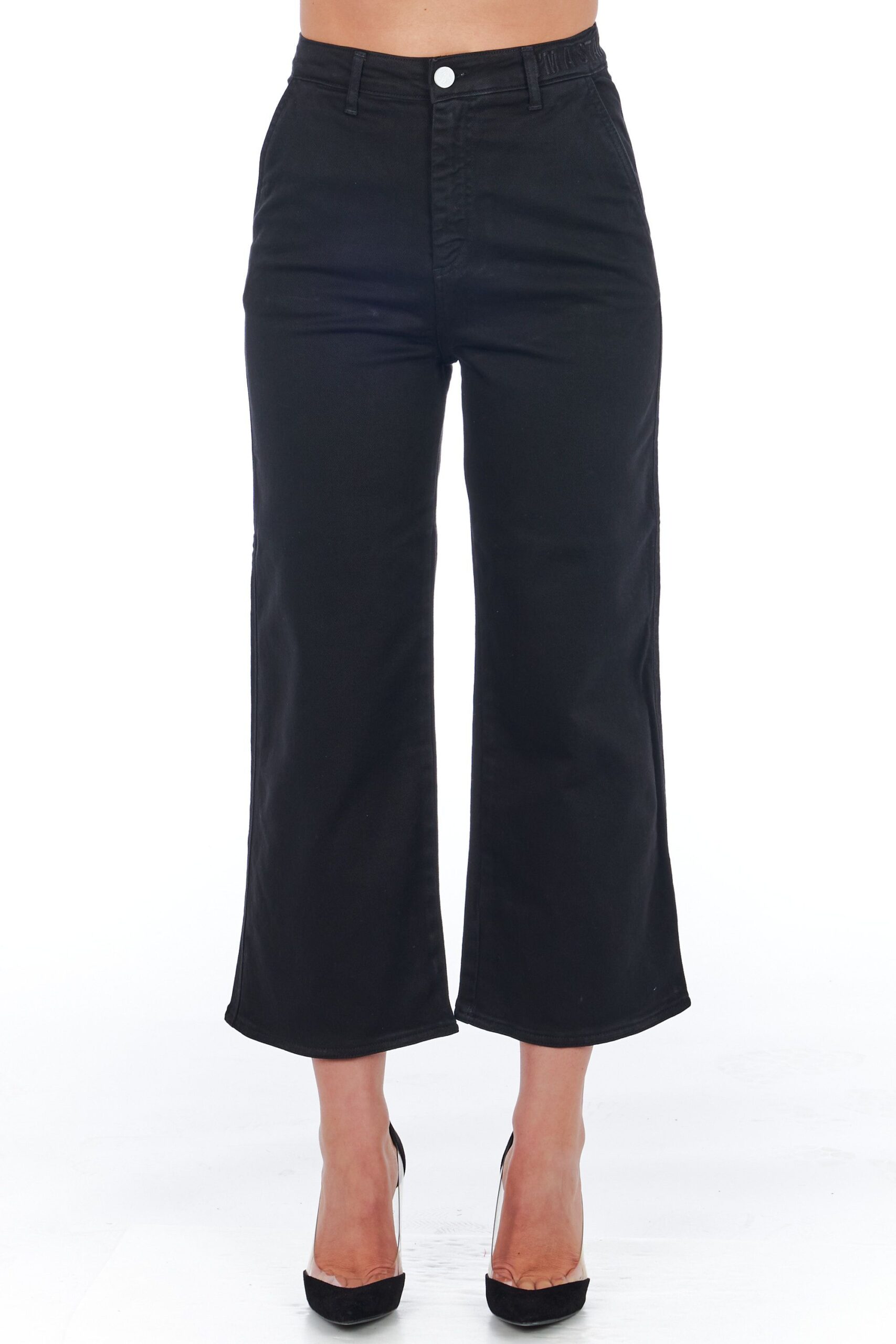 Cropped Trousers. High Waist And Multipockets. Front Closure With Zip And Button.