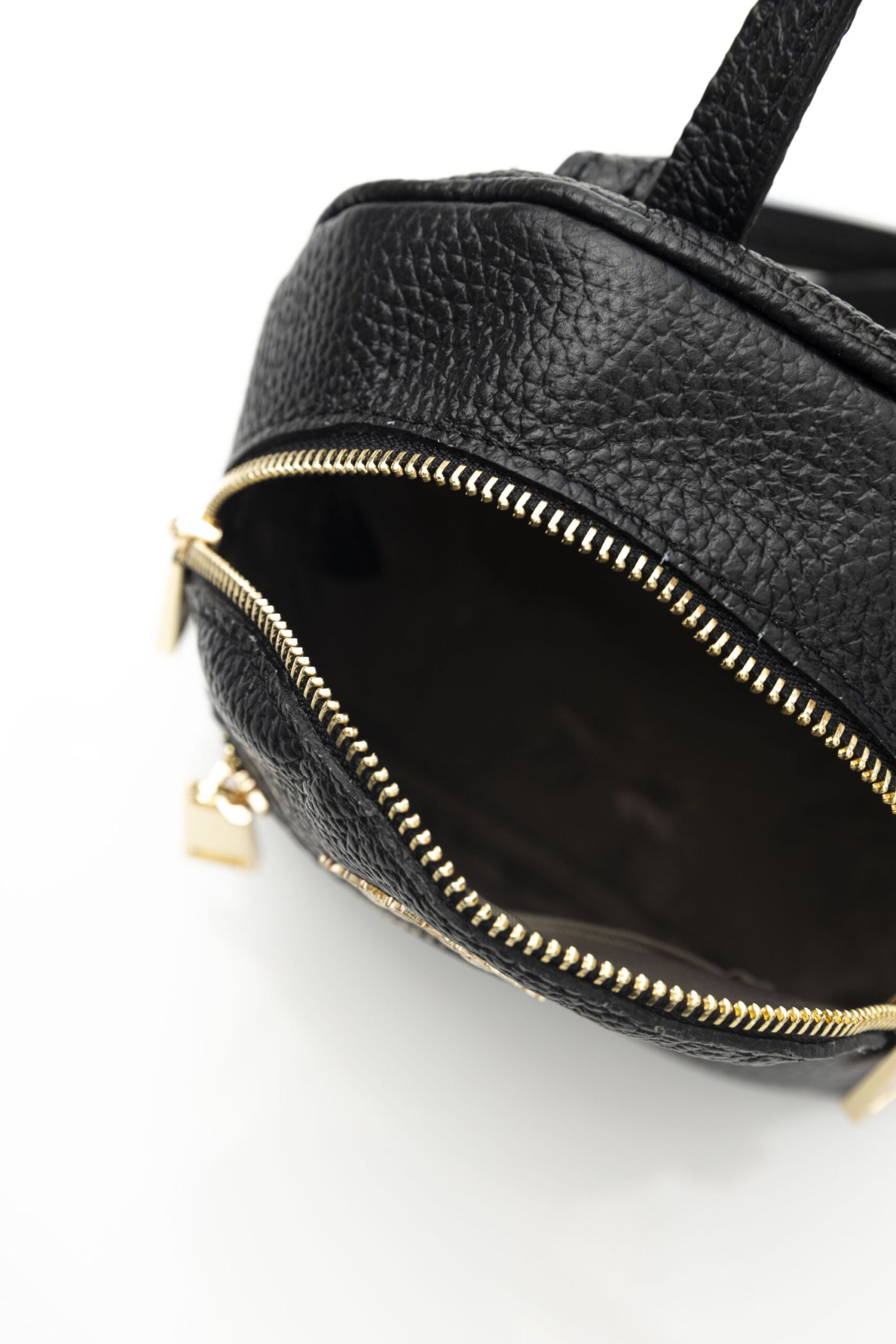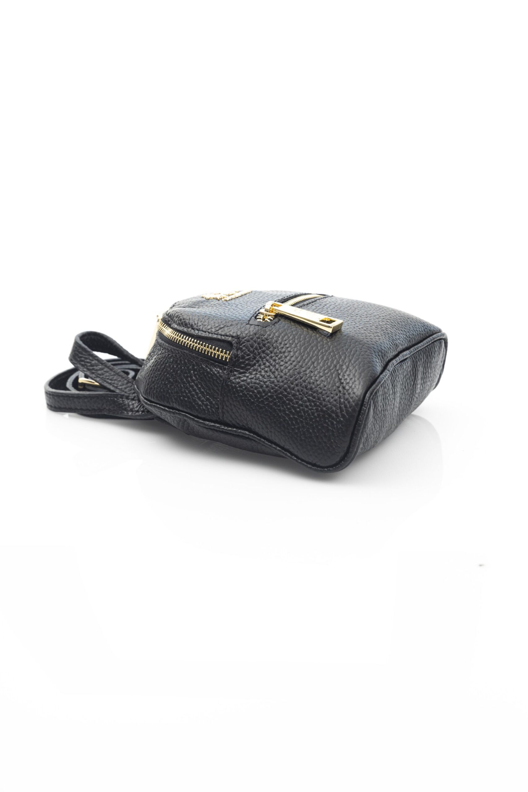 Leather Bag With Adjustable Shoulder Strap. Zip Closure. Front Pocket. Rear Key Holder Hook. Logoed Lining. Front Logo. 18*18*6 Cm.