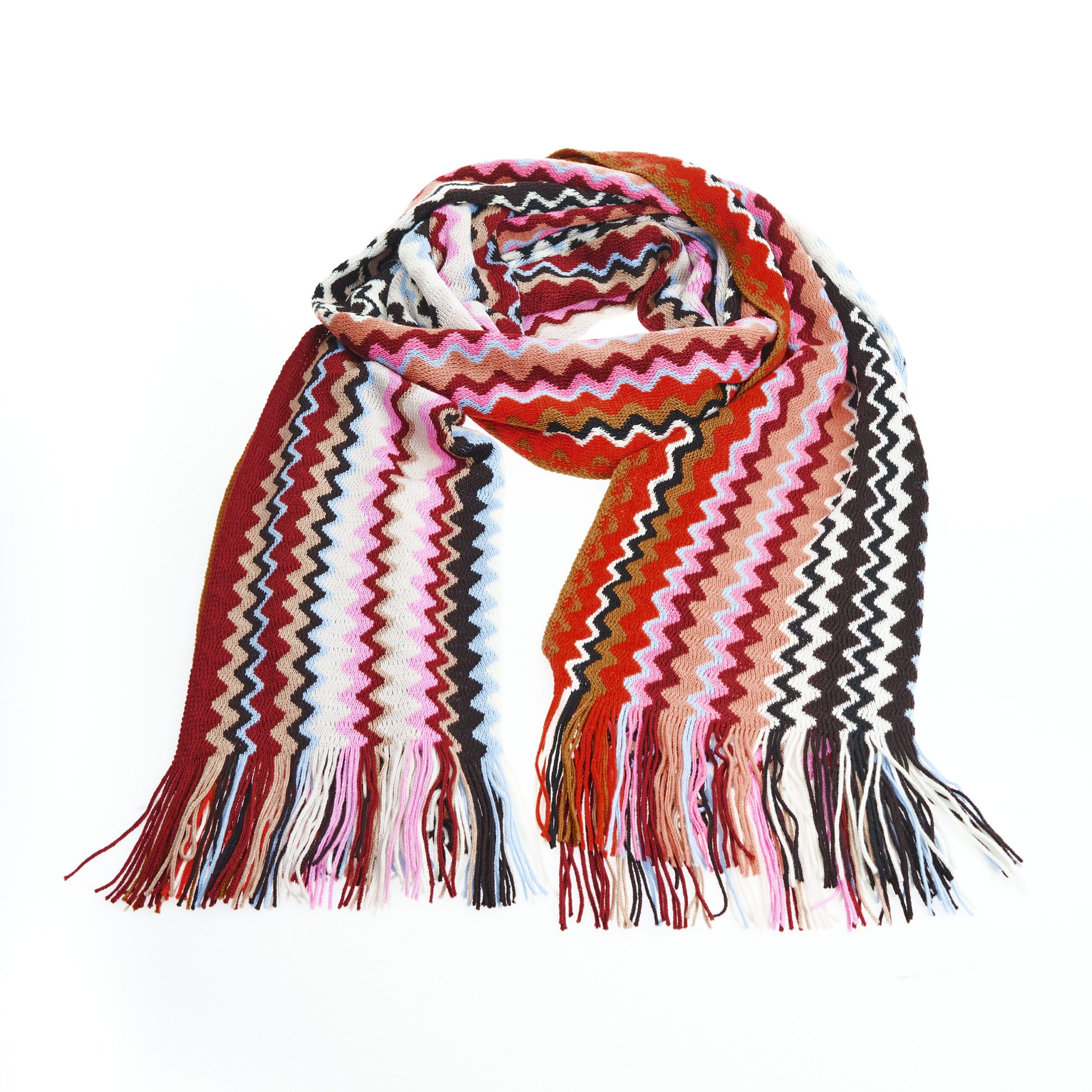 Scarf With Fringes With A Geometric Pattern And Bright Colors! Size: 180cm X 45cm
