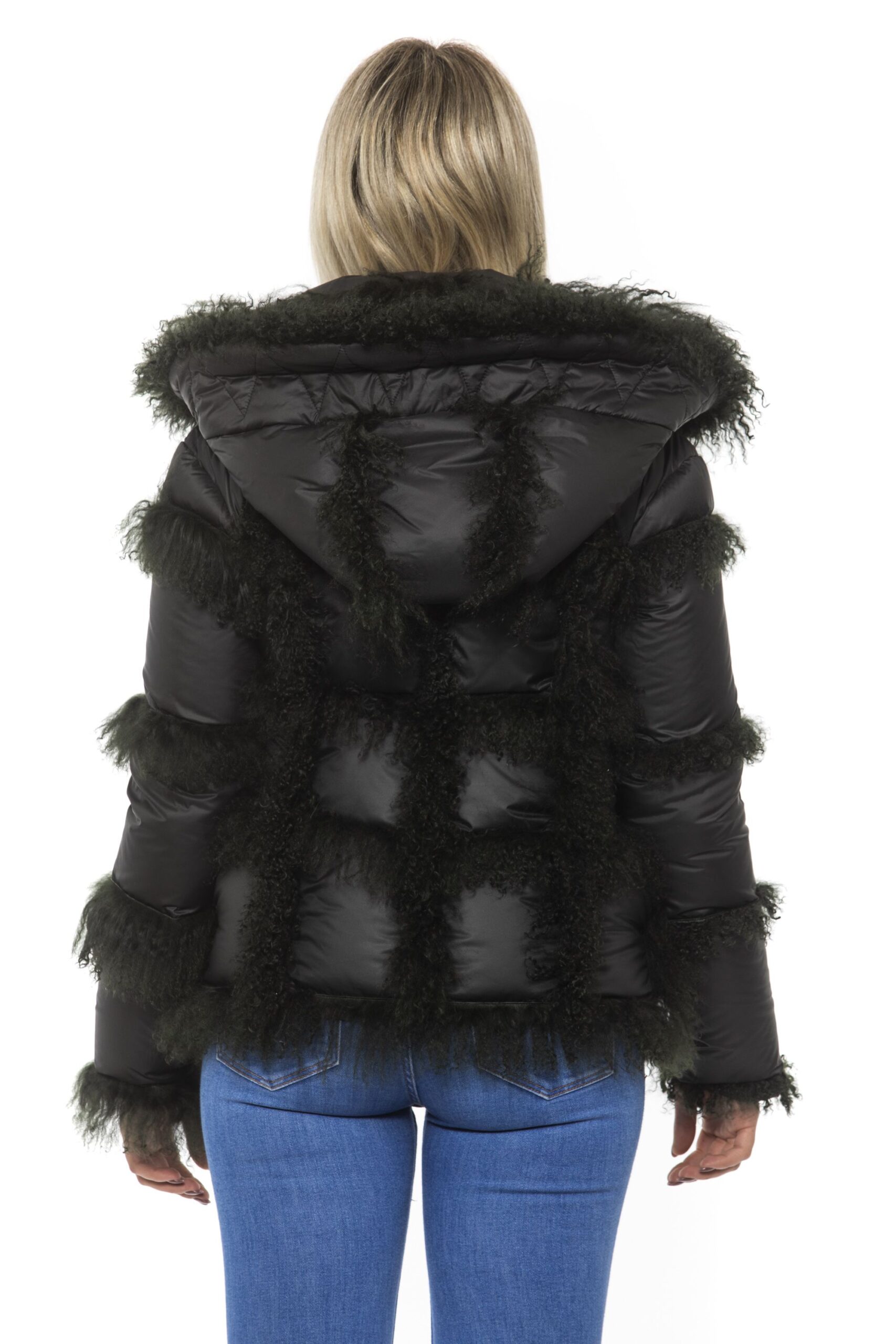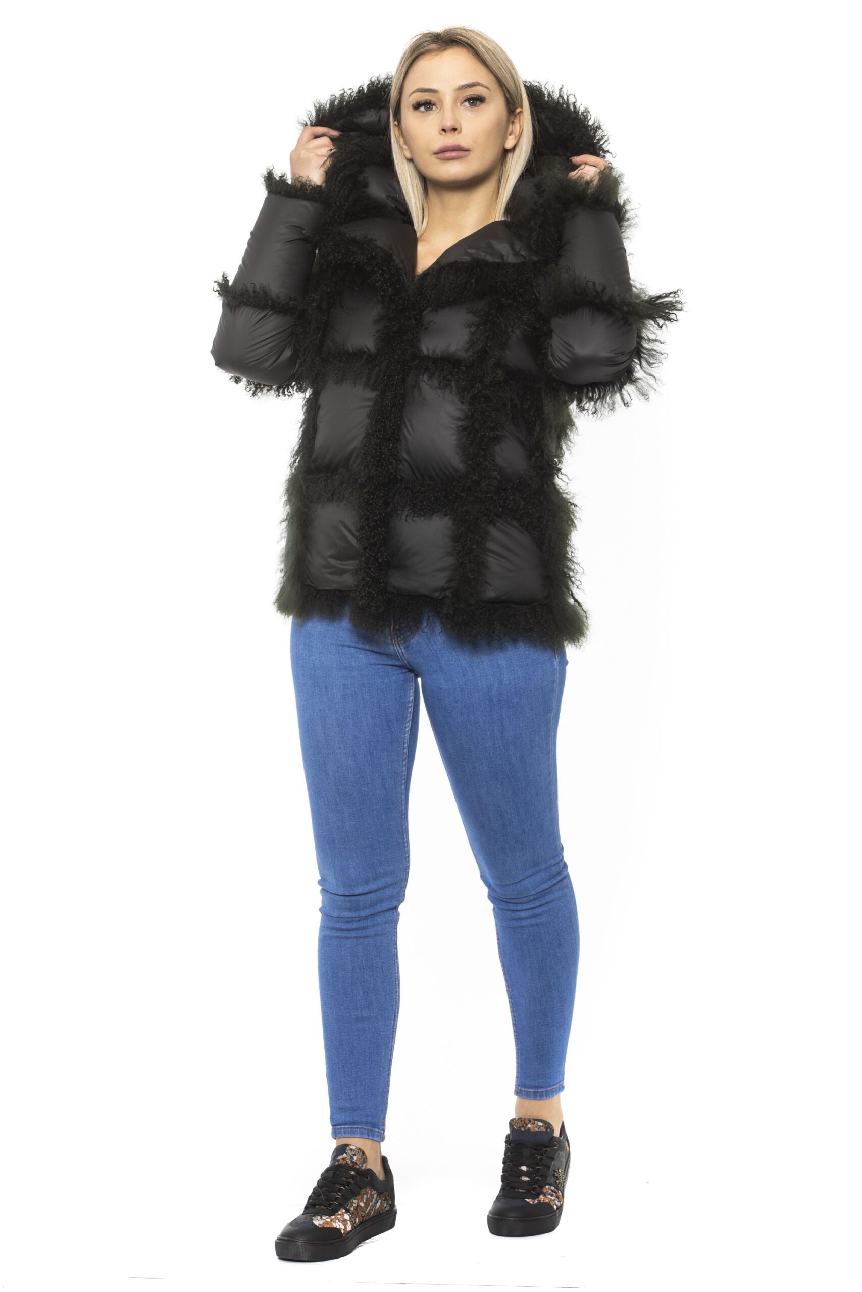 Woman Jacket. Closure With Snap Buttons. Fur Inserts. Hood.