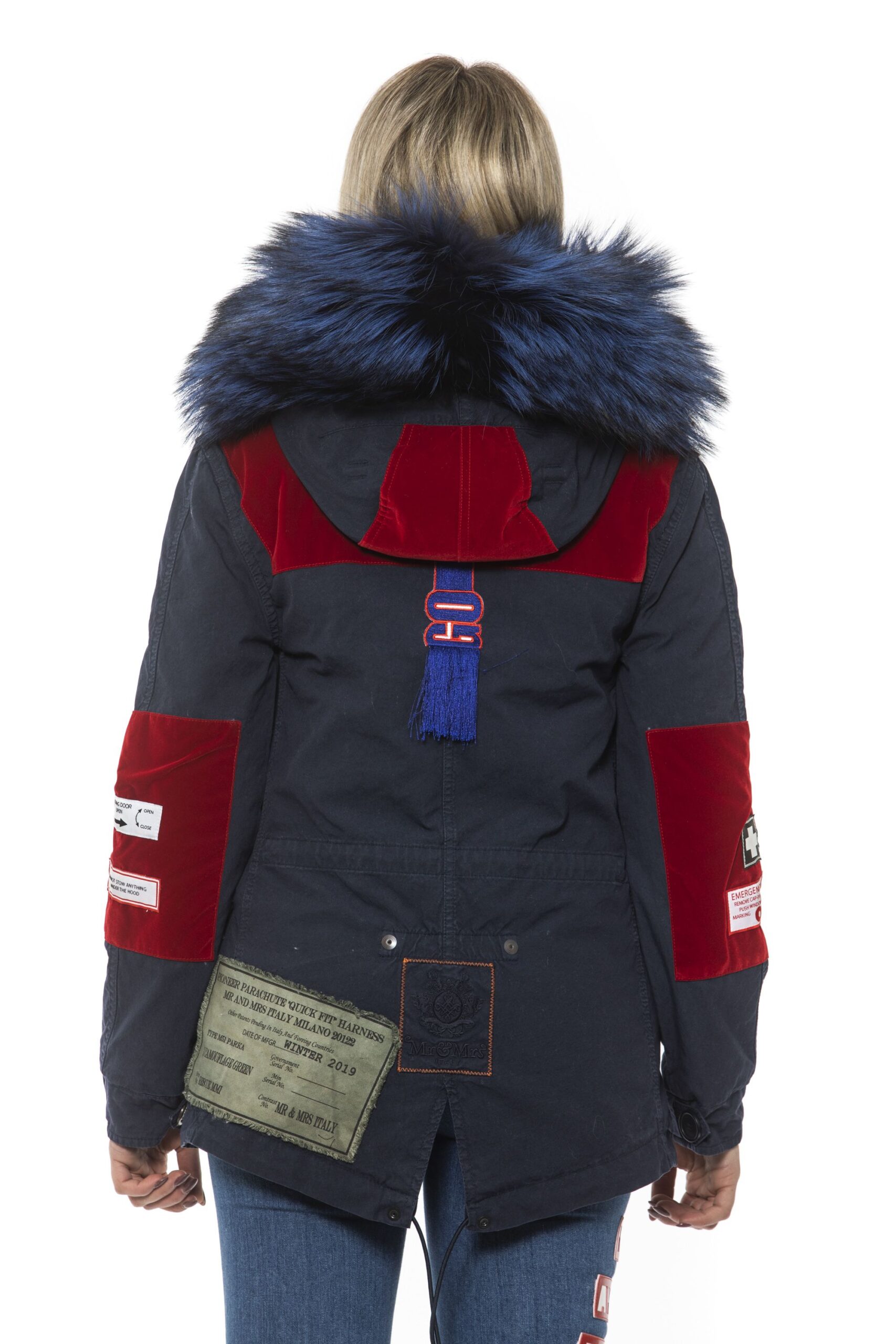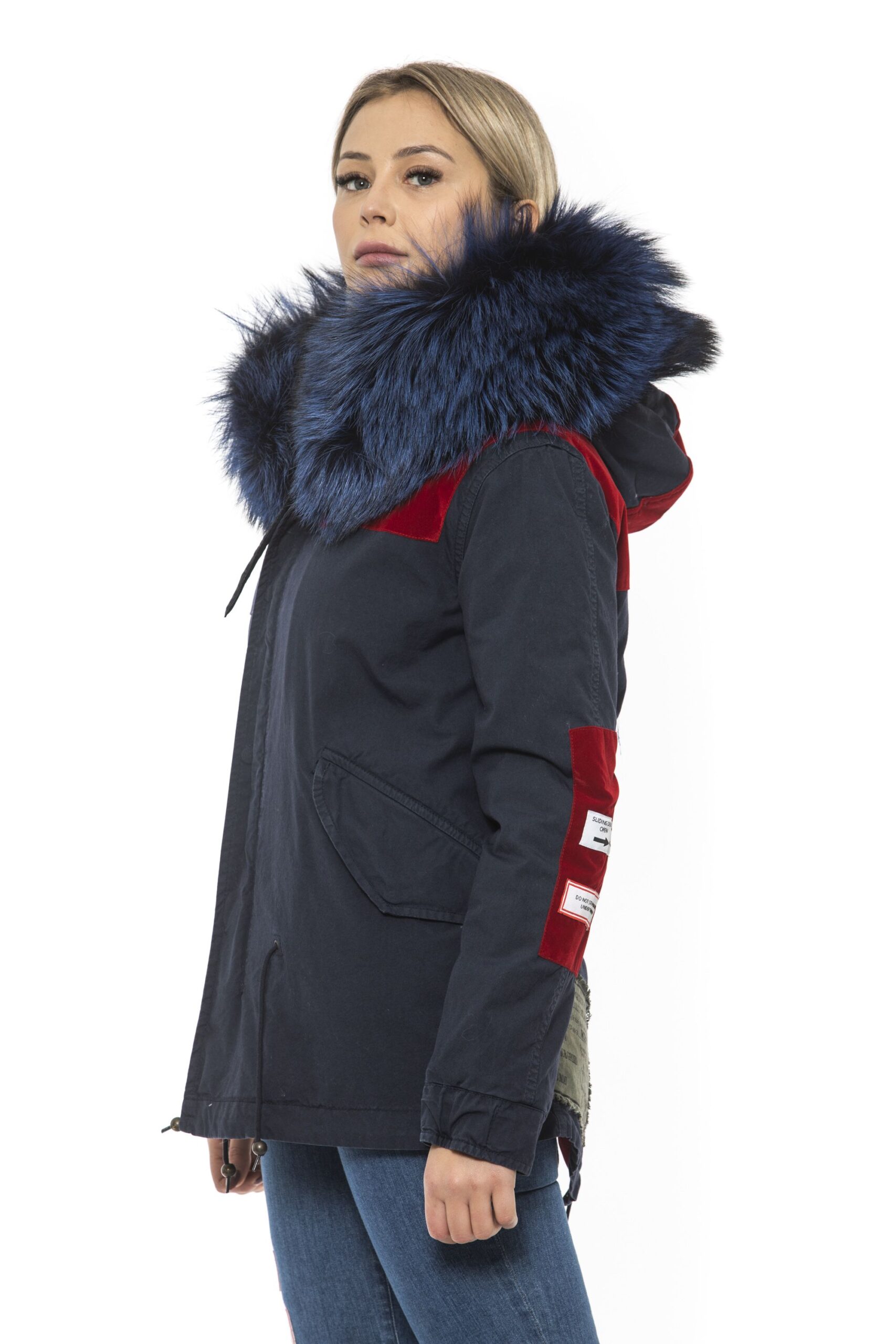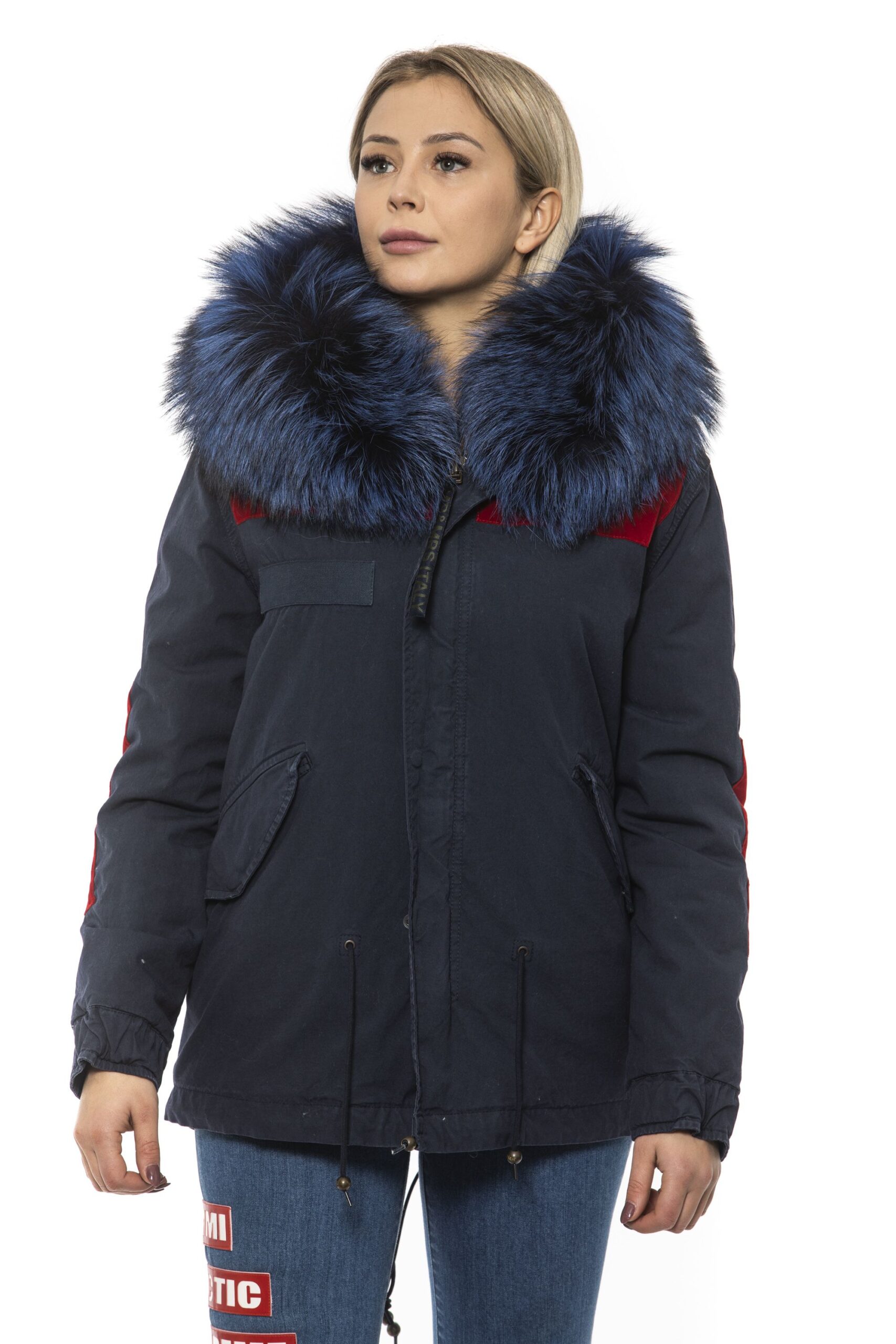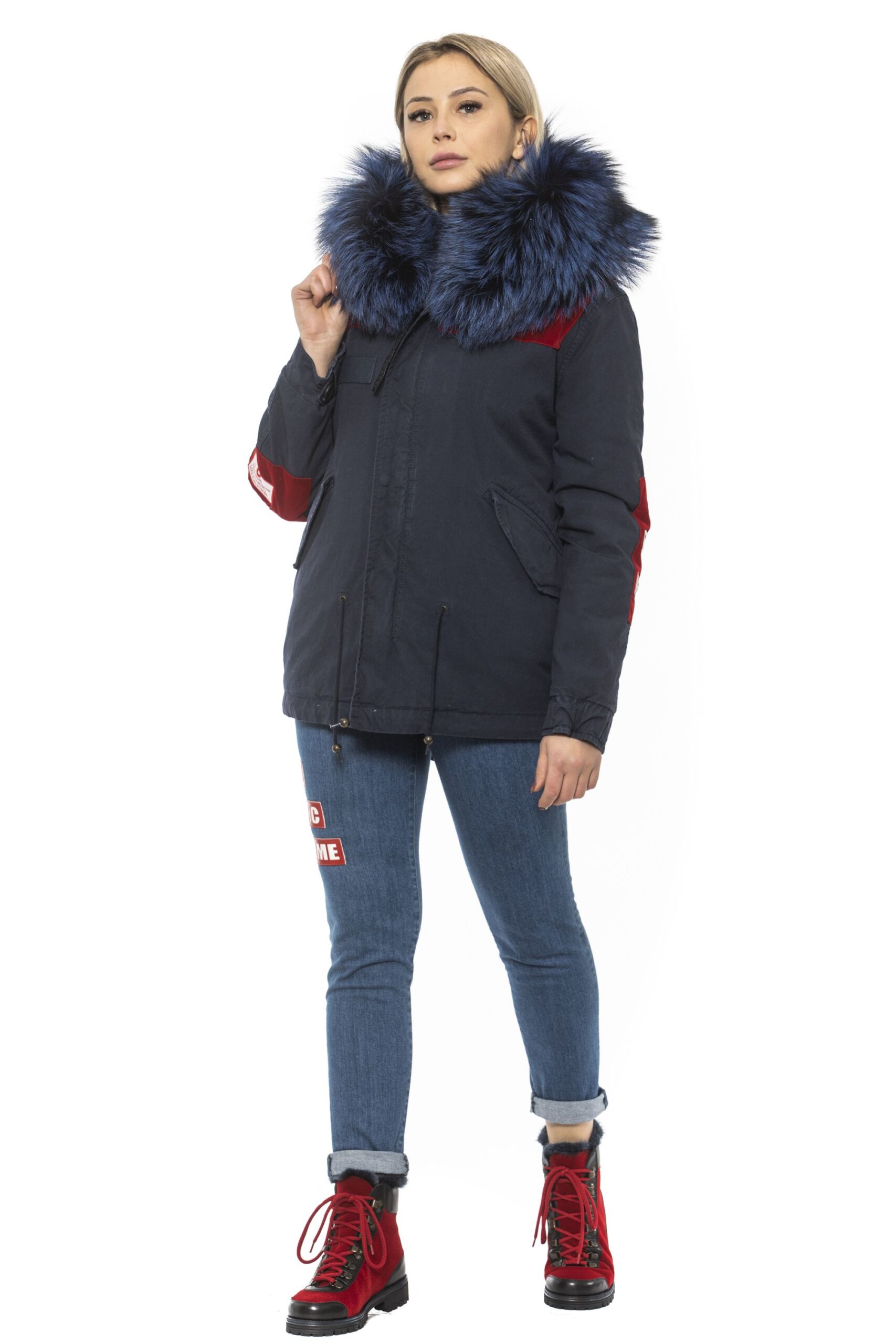 Woman Parka. Zip Closure And Drawstring At The Waist. Embroidered Patches. Hood With Removable Fur. Two Front Pockets.