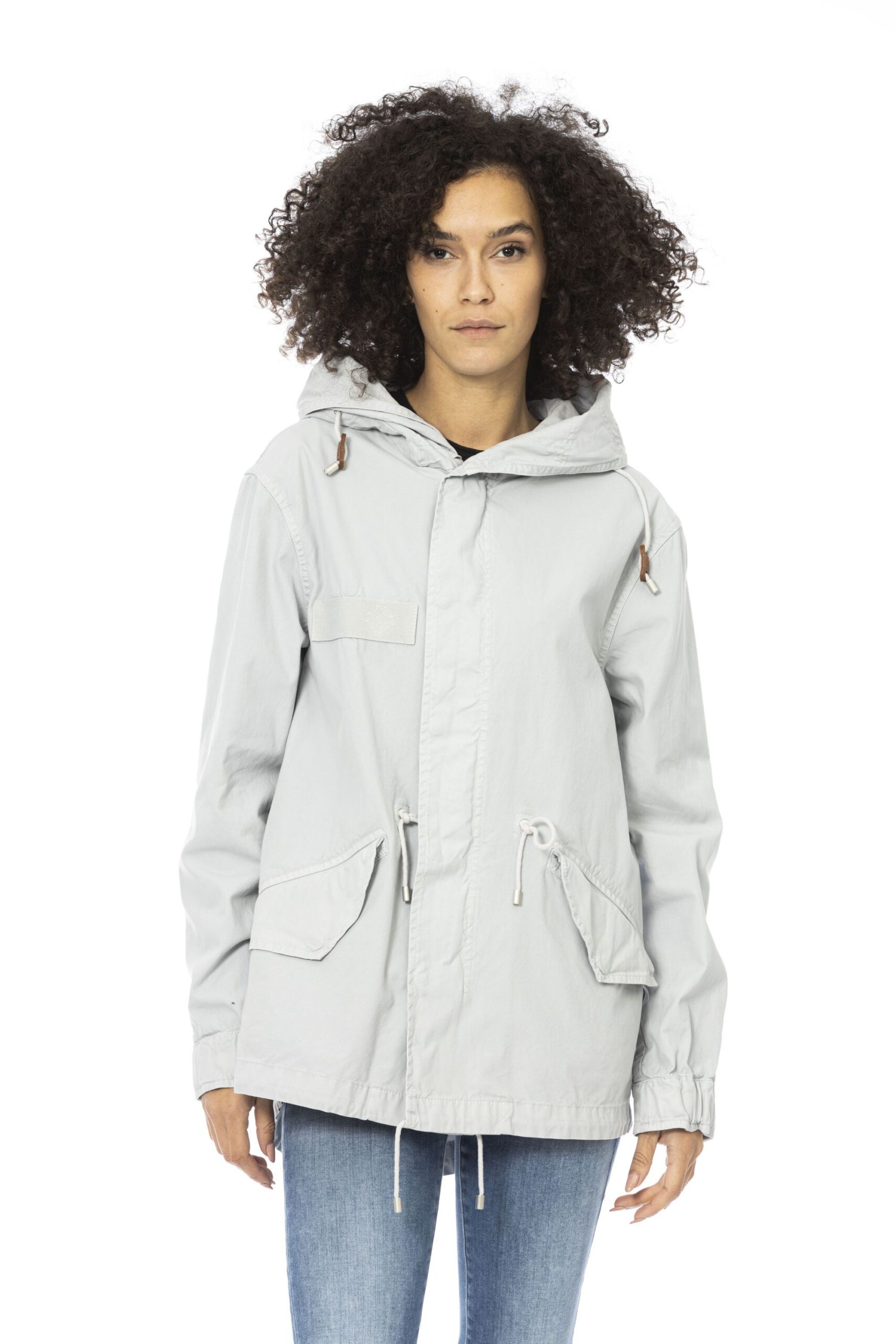 Short Parka. Side External Pockets. Adjustable Hood. Adjustable Waist Cord.