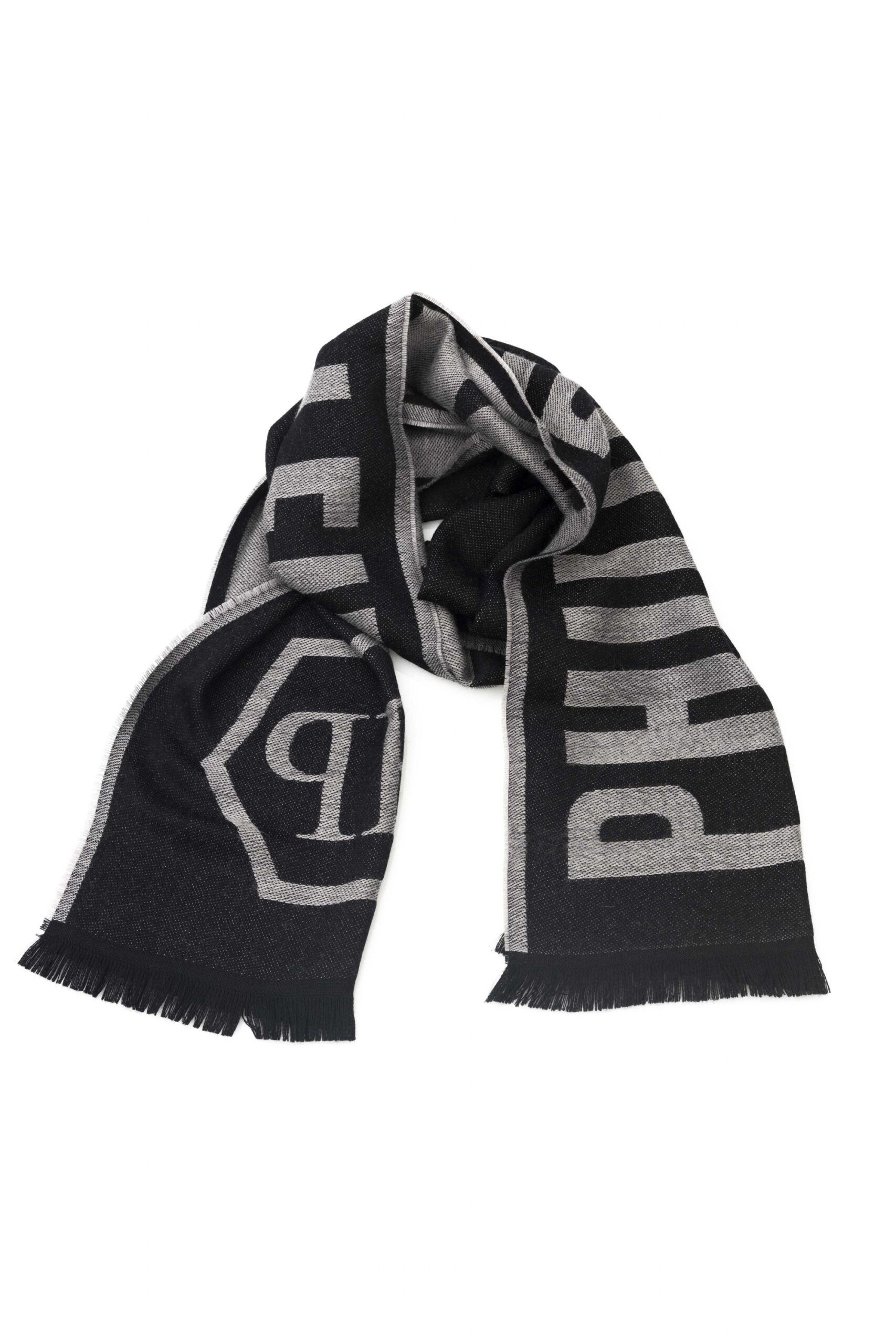 Scarf With Logo. Fringed Hems. Dimensions: 38 Cm X 180 Cm