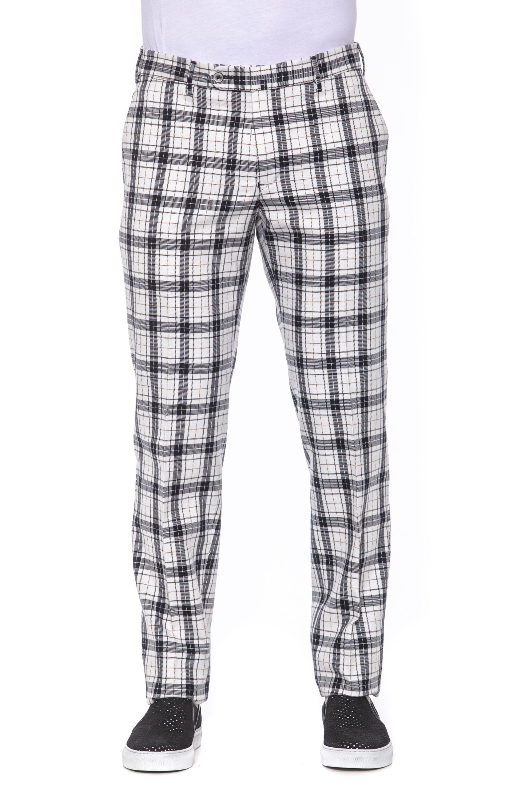 Men’s Trousers. Checked Fabric. Overlapping Closure With Button And Zip. Side Pockets. Rear Welt Pockets.